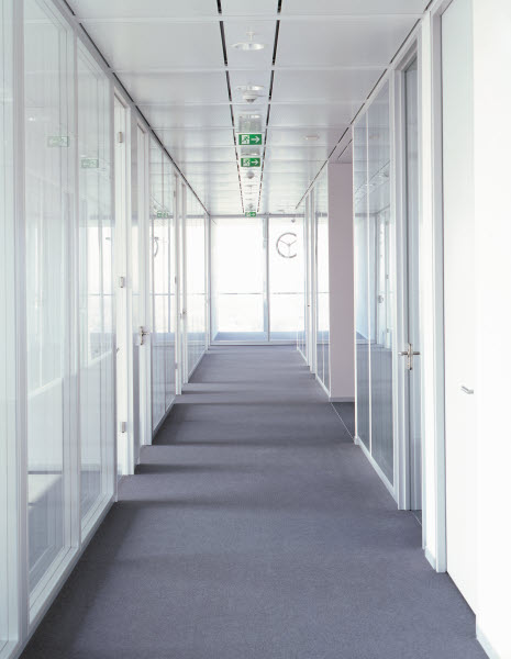 Sklo propůjčuje stěnám vysoce kvalitní vzhled a zajišťuje světlé, otevřené prostory. Zvukově-izolační vlastnosti skla zaručují klidné a nerušené pracovní prostředí - ideální předpoklad pro využití v kancelářích.