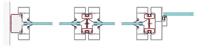 - Povrchové zasklení bez přímo viditelných rámů. Vysoce elegantní a přitom vysoce funkční řešení díky hliníkovým nosným profilům, které jsou zcela překryty skleněnými tabulemi. Připojení skleněných tabulí k nosným rámům je realizováno pomocí útlé lepící plošky. Tato kombinace zajišťuje vysoce estetický vzhled při zachování jedinečných akustických vlastností. Laboratorní vzduchová neprůzvučnost dosahuje u těchto prosklených příček vynikající hodnoty až Rw = 55dB (Linder Life 137 tl. 125 mm).